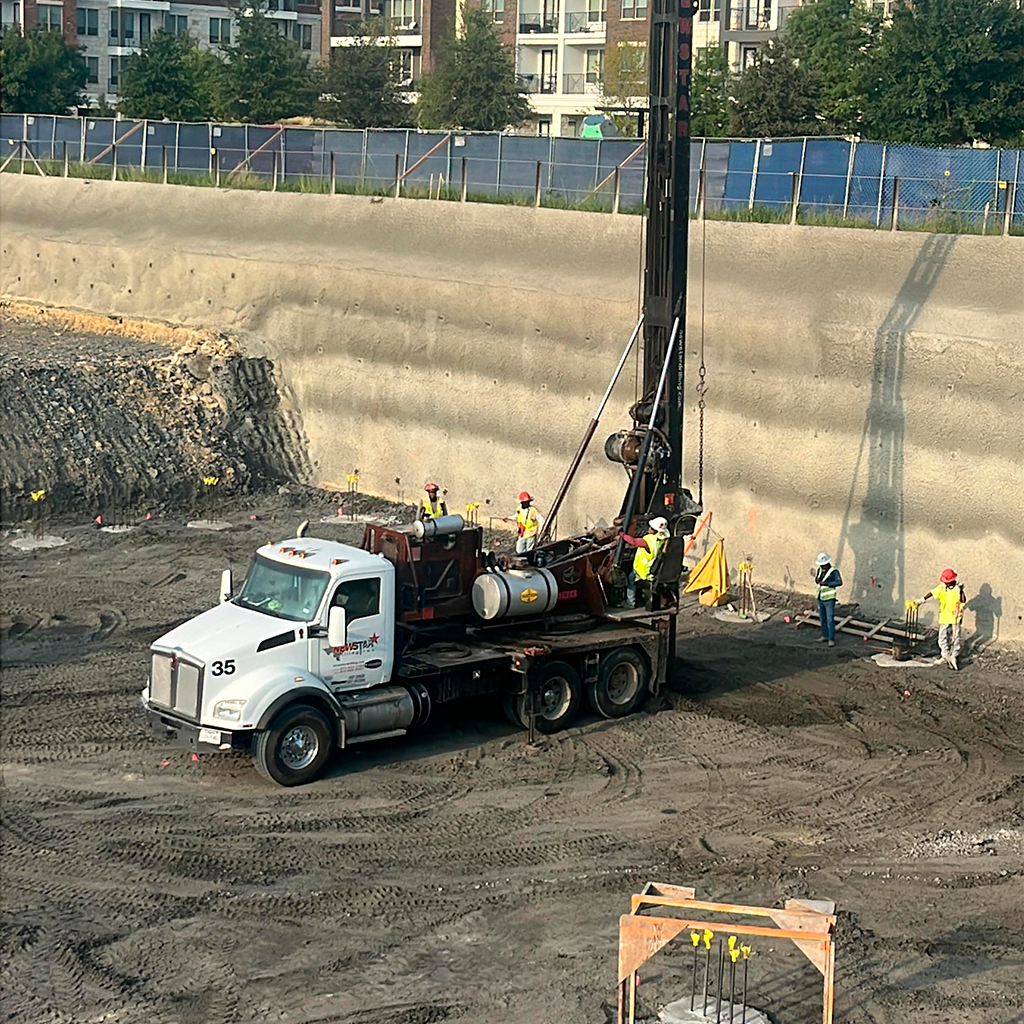 Nuestras instalaciones de pilotes perforados proporcionan soporte de carga profunda para proyectos comerciales y estructurales, diseñados para resistir las condiciones de suelo más exigentes en el área de DFW.